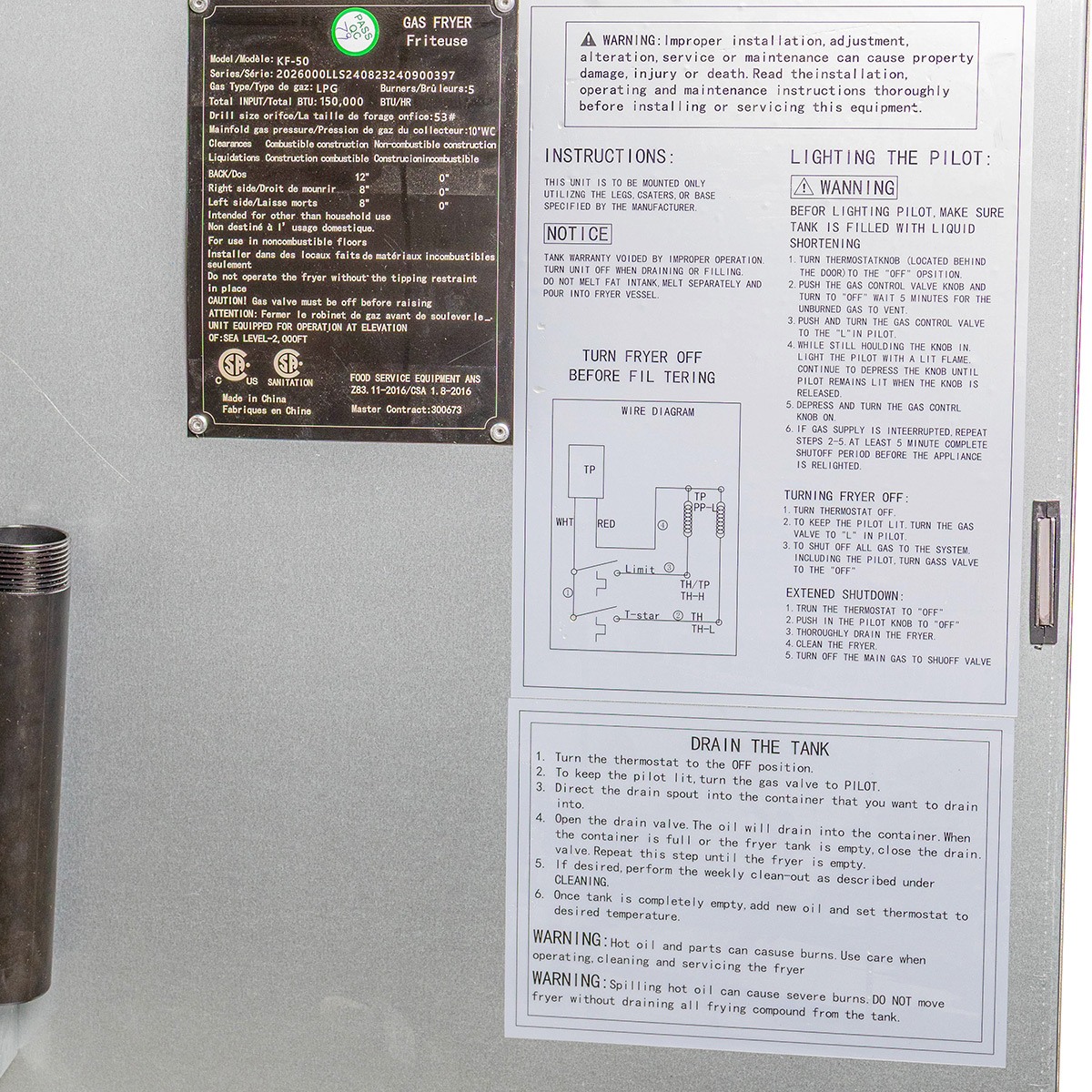 Las freidoras vienen preparadas solamente para funcionar con gas LP