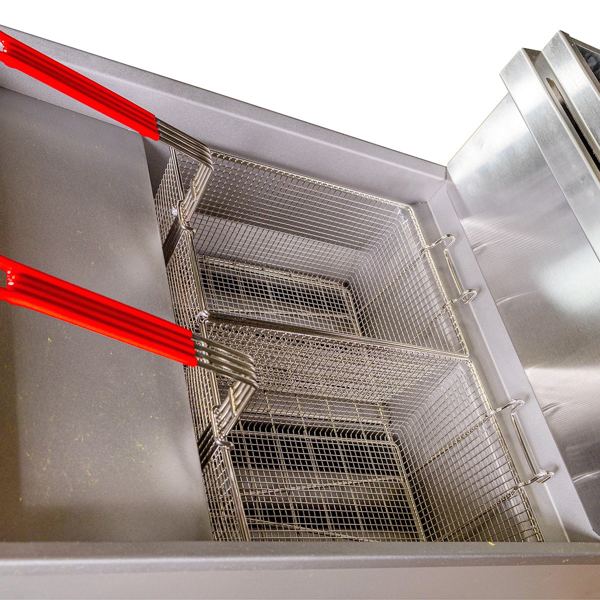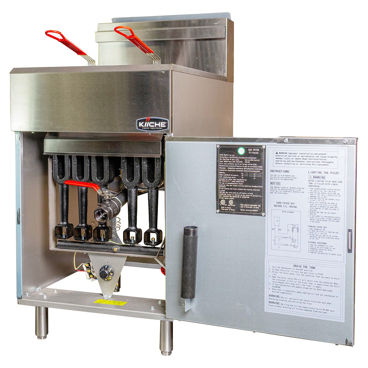 Freidora de 35 litros con una tina y doble canastilla, cuenta con 5 quemadores